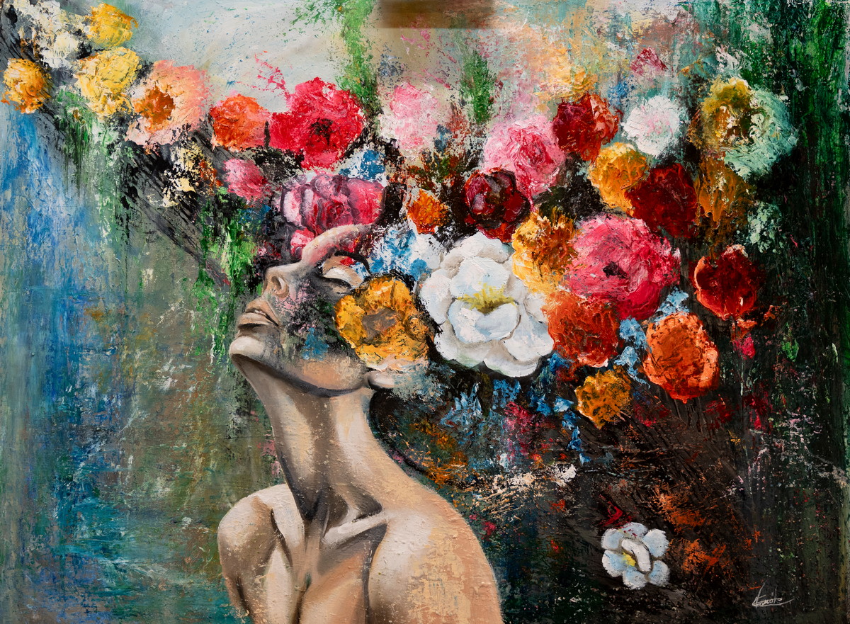 A tárlat a női lélek finom és erőteljes rezdüléseit járja körül – a harmónia csendes pillanataitól egészen a düh felszabadító erejéig.